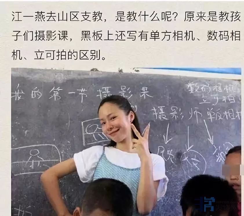 最近,江一燕正处于社会舆论的激烈旋涡之中。其中,她在支教时给边远山区的孩子上的课程竟然是谈论单反相机和其他相机的比较。有些人认为江一燕谈的东西过于虚无缥缈,因此质疑她这样做对不对?反观古天乐,他捐助了大量学校,而他与孩子们互动的活动是教孩子们学英语。因此,大家都认为古天乐踏实、靠谱。那么,江一燕教孩子们上摄影课,是不是脱离实际呢?