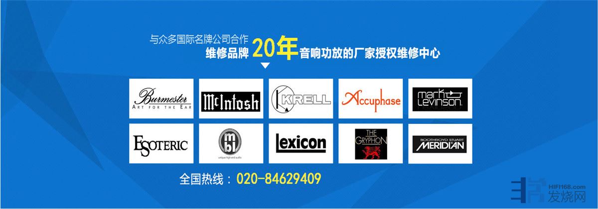 </a> 外地客户可快递或物流到本中心。<br><iframe frameborder="0" src="https://v.qq.com/txp/iframe/player.html?vid=o0113eku87g" allowfullscreen="true"></iframe><br>致大音响维修专业维修英国、德国、丹麦、法国、美国、日本和中国产中高端发烧功放、音响、CD机、喇叭。20多年的从业经验,对于各品牌音响设备的各种故障轻车熟路,对于没接触过的品牌,也是触类旁通。<br><br>维修价格需要通过检测后,根据具体故障,技术难度和维修时效确定,取得客户同意后再维修,对于报价后不同意维修的,原件退回,不收费用。<br><br>对于有动手能力,有维修工具的客户,故障不太严重的,可以提供在线技术支持,维修好之后收同等技术费。<br><br>快递时注意事项:<br><br>1.客户快递机器时,请用泡沫和纸箱包装厚实一些,有原包装的最好用原包装,最好请物流打上木架,以防运输途中摔坏,给您带来不必要的麻烦!顺带把您的地址,电话,以及机器的故障写在纸上随机器一并发过来,以方便我们和您联系和发货。<br><br>2.收到机器后维修师傅会在三个工作日内进行检测和确定维修费用,并与您进行沟通,您同意后我们方才进行维修,机器修复后我工作人员会将机器邮寄回客户。不同意维修,我们原机返回。<br><br>3.维修周期一般三天到一周,特殊情况除外。维修期间敬请大家不要催促,维修工作是需要一定的时间和精力的。不过维修进度是可以咨询的,希望大家能合作。<br><br>4.我们所报的价格是维修费和材料费,运费需要客户自己负责。<br><br>5.对于进液、受潮、摔坏、压坏、线路底层断线或经过多次维修的机器,请提前告知,以便师傅进行维修和提高我们的维修进程。<br><br>关于售后问题:<br><br>1.所有在本店维修过的机器,除人为损坏,相同问题点保修3个月。<br><br>2.客户收到机器后,请尽快测试,有疑问随时跟我们联系,我们提供技术支持,以便以快解决问题。<br><br>特别提醒:收到快件时,请您首先仔细查看包装外观是否完好,然后当着快递员的面打开包装检查快件物品是否正确无误,确认没问题再签收。如遇包装损坏或物品不对等情况请您立即联系我们以保障您的利益。<br><br>联系地址:广东省广州市番禺区市桥清河东路124号德安社区东晖园东晖一街一座101地下首层。<br>联系人:温生 13929510627<br>微信号:13929510627<br><br>致大音响维修技术部是专业承接国内外品牌音响保养、维修服务。是目前全国音响维修行业的楷范,在音响器材维修方面,技术尖端、经验丰富、拥有出类拔萃的傲人技术和先进检测议器。对硬故障和软故障都有独特的检修方法,对于CPU损坏的音响,有专业的软件工程师编程。原厂配件、质量保证。工程师们凭着多年经验的积累和不断精益求精的开拓进取精神,为广大音响发烧爱好者的音响解除各种高难度、隐蔽的故障,故获得众多发烧友的美传和合作机构的认可;在音响发烧圈里赢得很好的口碑,信誉极高,被称誉为“音响维修界的圣手王”。用户遍布神州大地各大城市。热诚欢迎各单位来人来电洽谈业务或个人送机上门及邮寄。本部维修范围涵盖欧美品牌和部分日本品牌器材,发烧HIFI音响、家庭影院音响、知名品牌功放、喇叭、CD机专业维修。服务品牌:金嗓子accuphase、马克列文森MarkLevinson、麦景图MCINTOSH、怀念WADIA、英国之宝MERIDIAN功放/CD,翩美PRIMARE音响、克莱尔Krell功放、DENON天龙、马兰士、YAMAHA雅马哈、ONKYO安桥、音乐传真、CEC、、百事通/Bryston、Classe驾势、乐林、丹麦贵丰、柏思PASS、莱斯康、博士、大鹰THETA、艺雅、国都、cello车佬、瑞士FM、莲音响、STUDER/CD、ARC功放/CD、JBL喇叭、贵族ProAc、ATC、KEF、宝华、世霸等箱喇叭音响音专业维修。服务宗旨:原厂配件、还原原厂音质。服务口号:正德厚生,臻于至善本公司主要经营产品:音响维修<br>专/一切世界名牌音响维修品牌:<br>