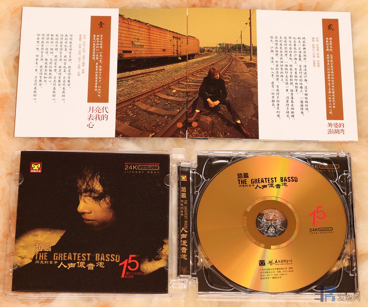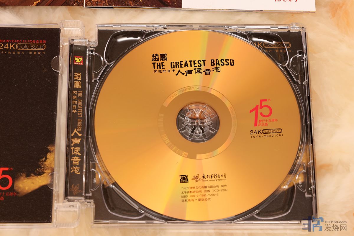 之前《赵鹏 人声低音炮 闪亮的日子 》已经出版过普通CD、AQCD、HQCD II、玻璃CD、黑胶等等版本,最近15周年24K纯金版本上市了。
