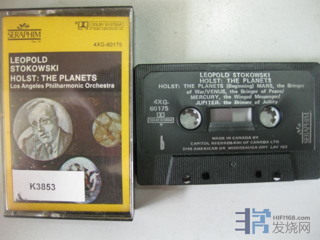原版古典卡带K3853EMI; 霍斯特行星组曲,洛杉矶爱乐,斯托科夫斯基,美国版立体声,品相:良好 Y40