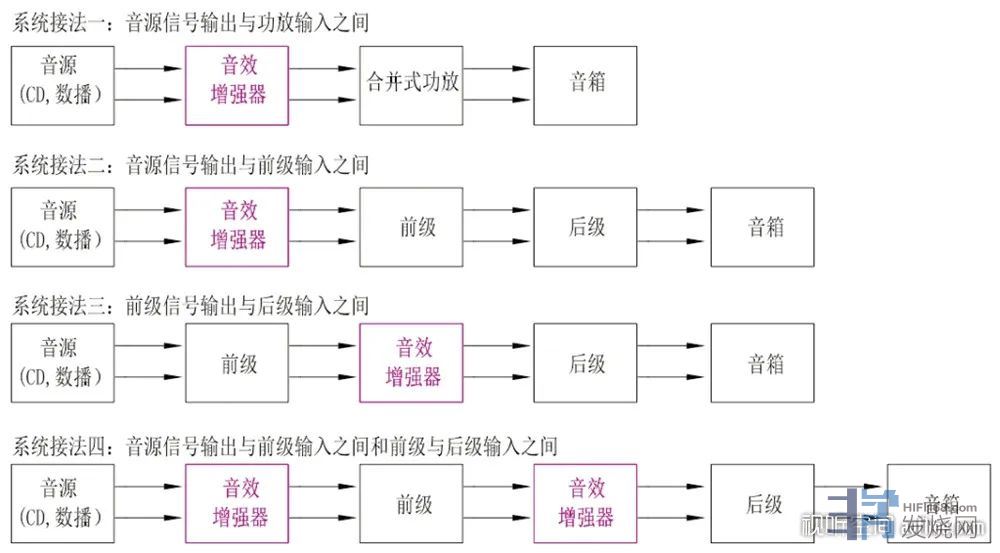 ▲ UMI Audio音效增强器Sound Enhancer接入音响系统四种连接方式