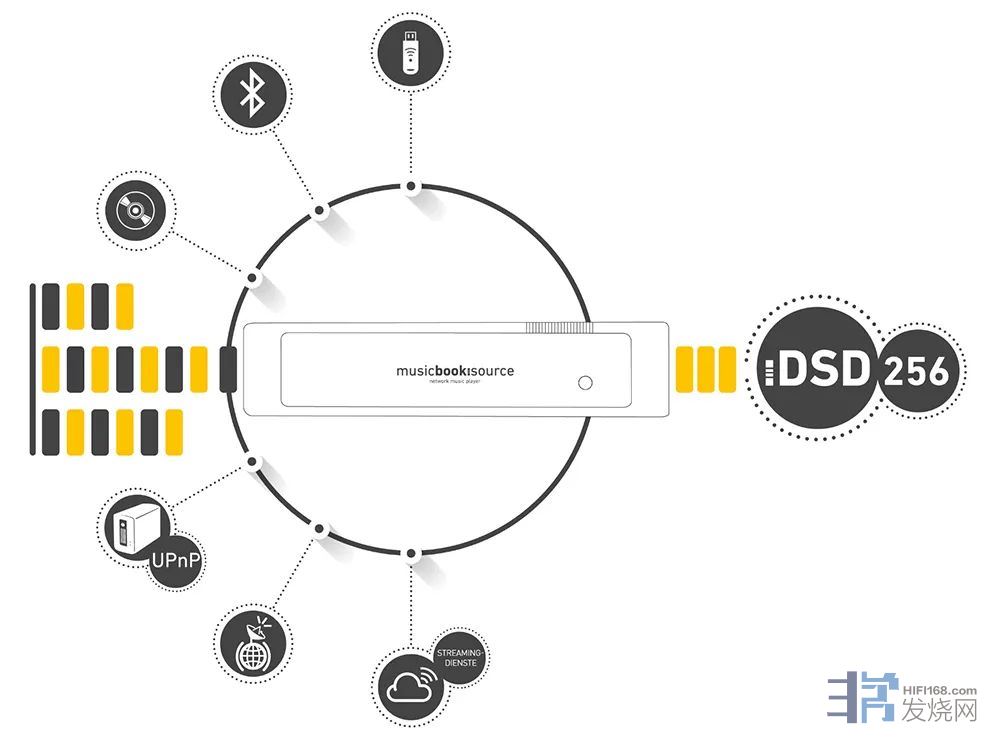 同時擁有最高 32 bit/ 384 kHz PCM 與 DSD 512,與 Musicbook Combo 身價差不多的 DAC,大概都能把規格做到這麼高,可是具備 Re-sampling 演算法,將 PCM 轉換為 DSD,而且是 32 bit 解析度、180 dB 超高動態範圍,這就是 Musicbook Combo 與眾不同之處了。