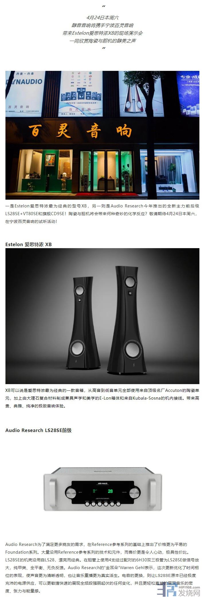 4月24日本周六,Estelon爱思特浓携Audio Research与您相约宁波百...