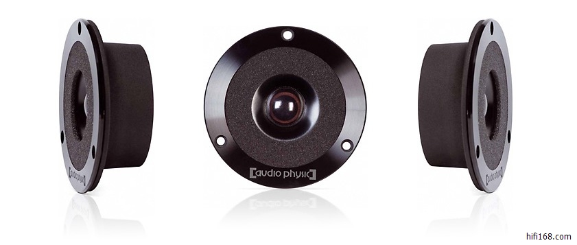 3、正因为中音选用了硬质震盆的单元,为避开中高频段固有的谐振峰,所以上分频点不能分得太高,通常只能分到2khz或以下,这就要求高音单元要有足够低的下限来衔接。Audio Physic全系列音箱都采用1.2寸甚至是1.75寸的大振膜HHCT高音