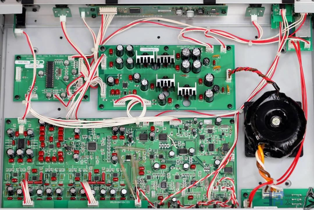 由于CEC使用特殊的螺丝,我们无法打开DA-SL解码器,这是旧版的DA3N内部,可以看出模拟输出部分都是全平衡式架构