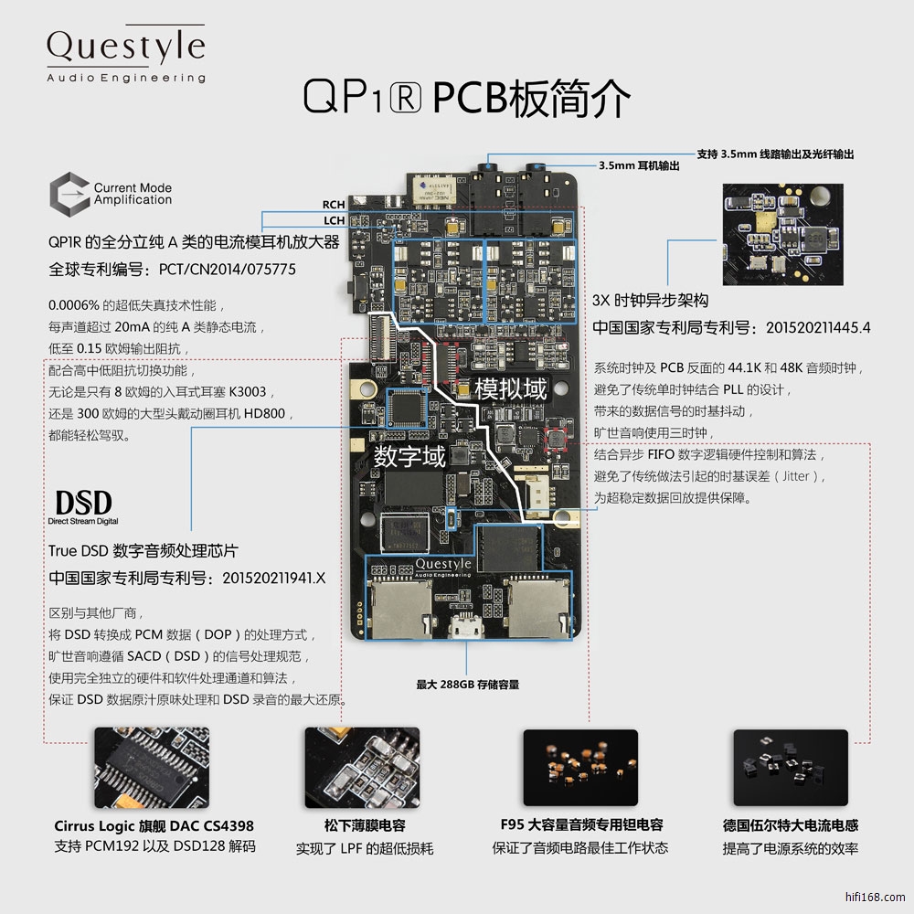 入选的QUESTYLE 旷世就是这款高清DSD便捷播放器:QP1R,定价人民币7000元。
