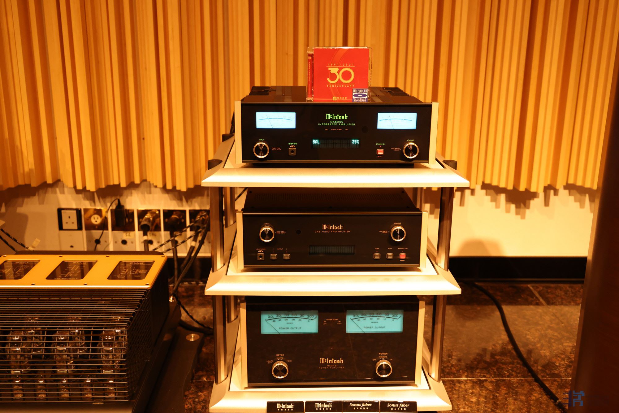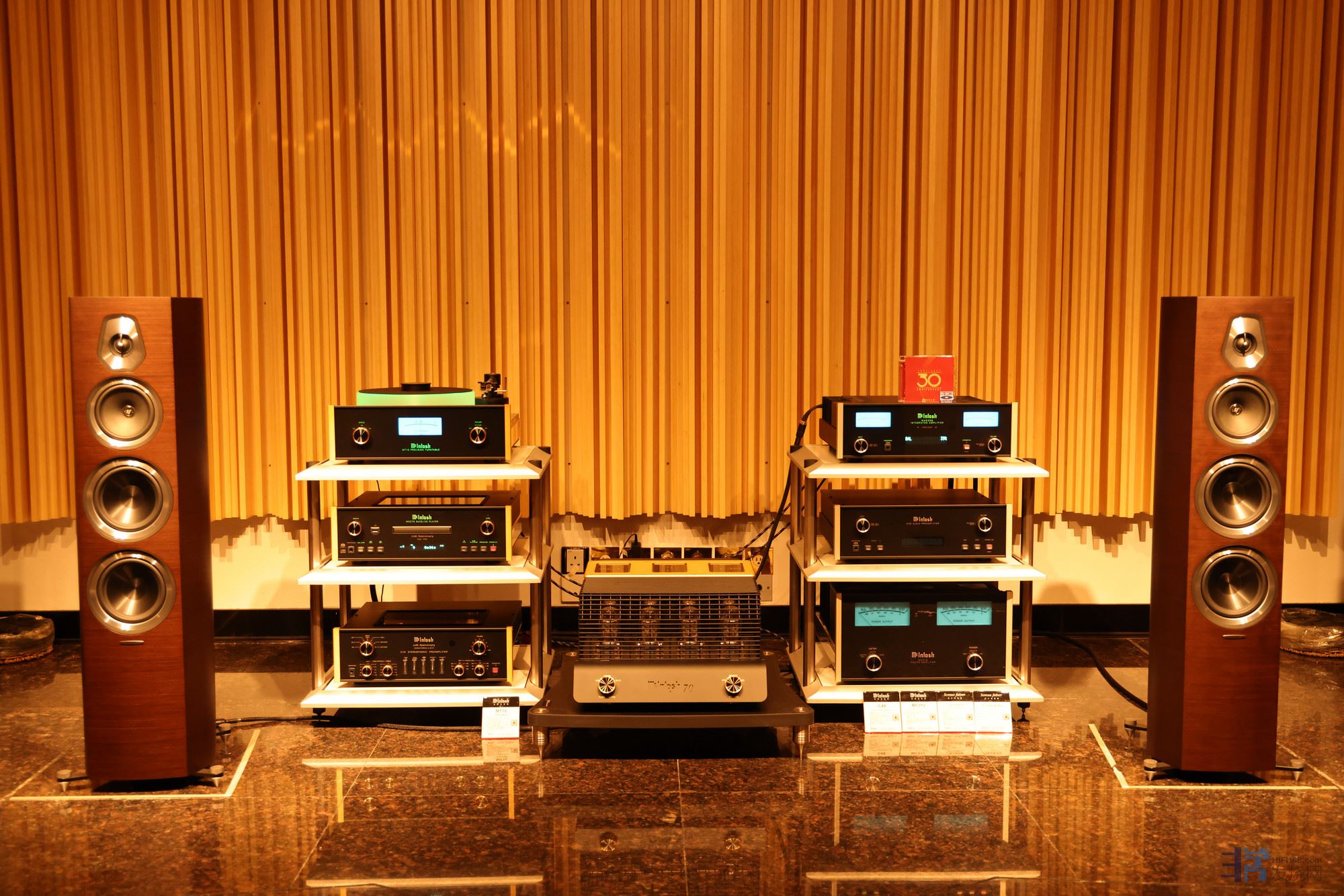 搭配英国和弦(Chord )CPA3000前级、Ultima 3单声道后级,功率8欧480瓦,TAOC器材架。