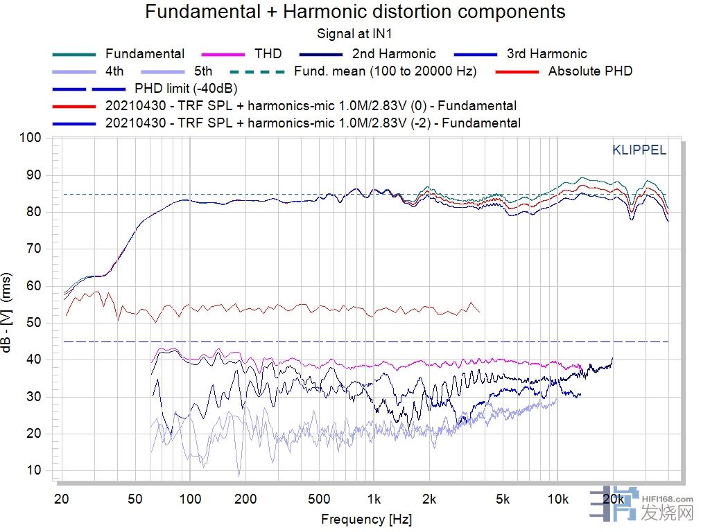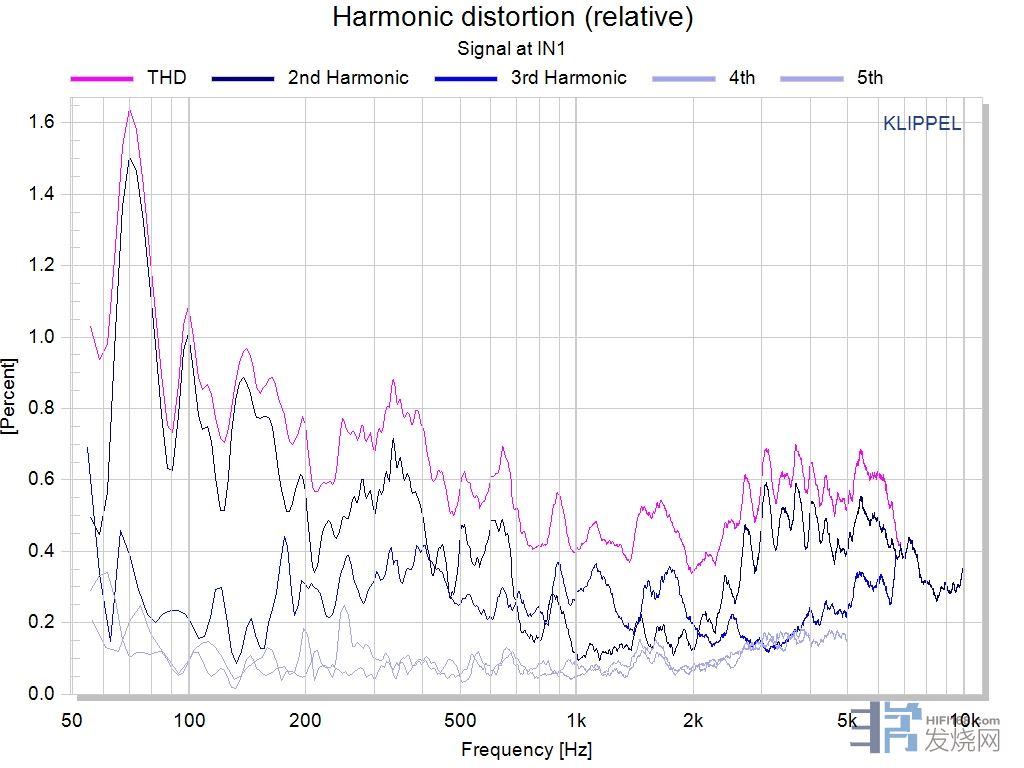 自然声NS15的失真曲线,超过80Hz后低于1%,中高频段仅有0.5%左右