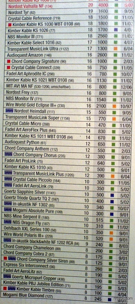 另外stereo杂志也有喇叭线榜单,按档次分成四级,不排名,而且排在前面的有一半是HMS...