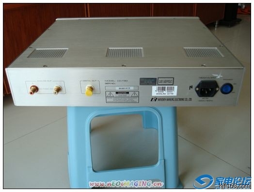 底部采用了四只粗大的铝合金底座,杜绝了外界震动对音质的不利影响。背板上我们看到了熟悉的CMC镀金莲花插座,从这些细节上可以看到厂家在对影响音质的环节上是不惜工本的。