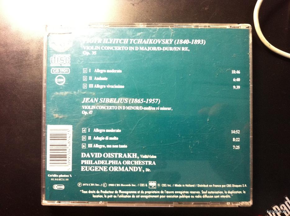 [color=#333333]这个录音为CBS 1988年出品,其中柴可夫斯基小提琴协奏曲的第二和第三轨合并为一轨(CD盘面印刷说明),但封底还是分开的两规,造成了错版。[/color]
