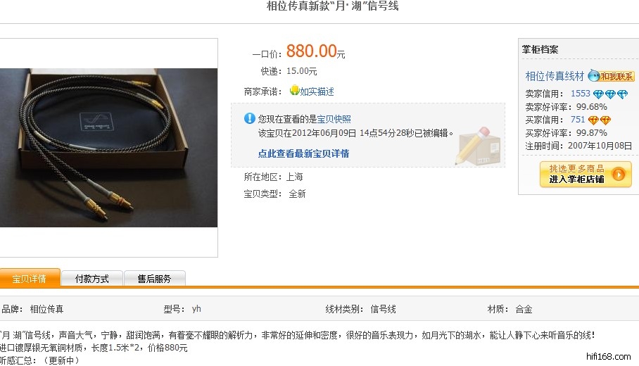 我于今年7月下旬参加相位传真信号线试听活动被“月湖”信号线毒倒,一下子入手了该信号线。现已经审美疲劳想换换别的风格的信号线玩玩,