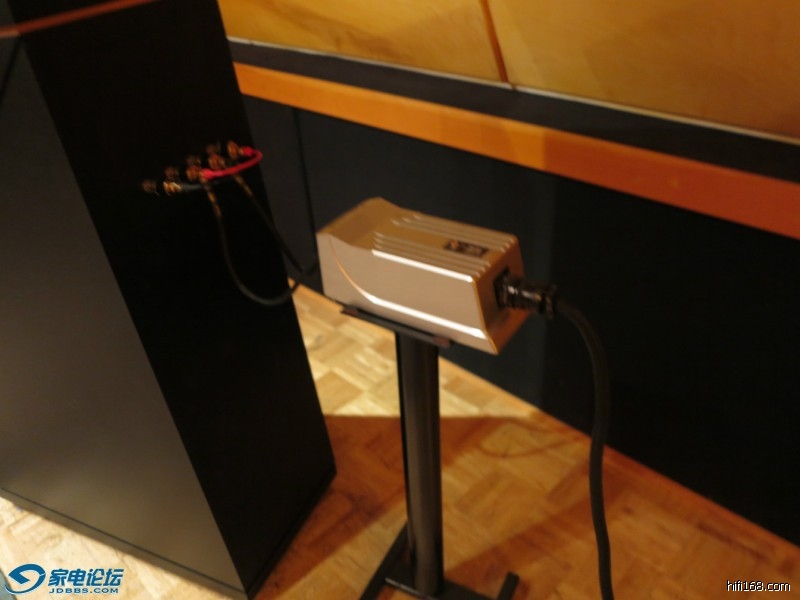 喇叭线这个大盒子很沉,老板说一定要用他自己的脚架,不然会恶声。--