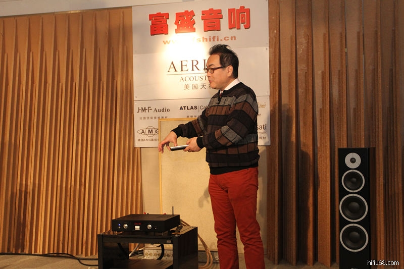 1月18日中午,富盛音响于广州海印广场四楼富盛试音室举行了SoulNote SA300无线音乐功放演示活动,现场有来自日本的SoulNote总裁松原幸辉先生向大家讲述了SoulNote的发展历程和在日本音响业界的状况。活动中并现场亲身向大家演示SA300的全新无线蓝牙播放功能,以及DSD解码技术,让现场的朋友大饱耳福。