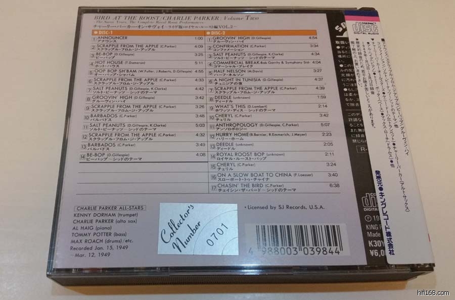 [color=#444444][font=微软雅黑, Tahoma,]1、Charlie Parker - The Complete Savoy Studio Sessions(44年9月-48年9月录音室录音) 3CD 86年 King Reords 9000日元 三洋压片,无侧标,盘面九成新 150元[/font][/color]