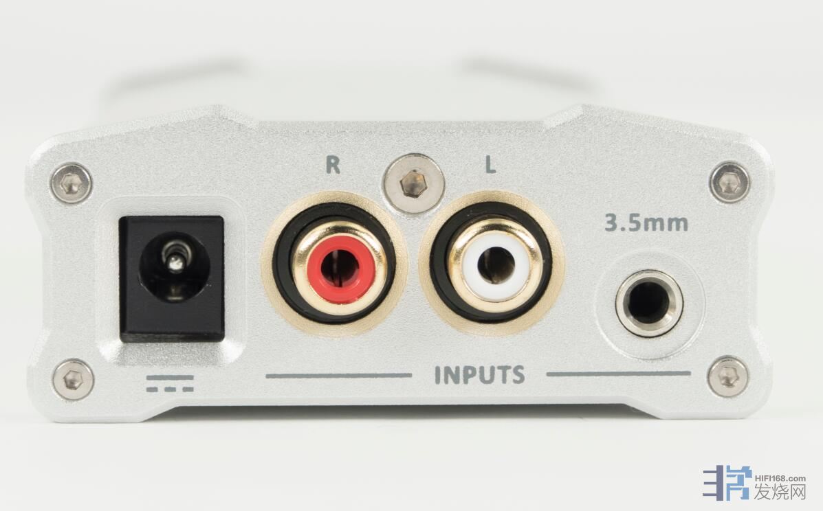 iFi micro iCAN SE的后面板,它提供了2组模拟输入端口,一组为台式设备使用的RCA口,一组为随身播放器使用的3.5mm输入口。另外从上面照片可以看到iFi micro iCAN SE出厂时RCA口都套上了保护套,可以防止接口氧化,非常贴心。
