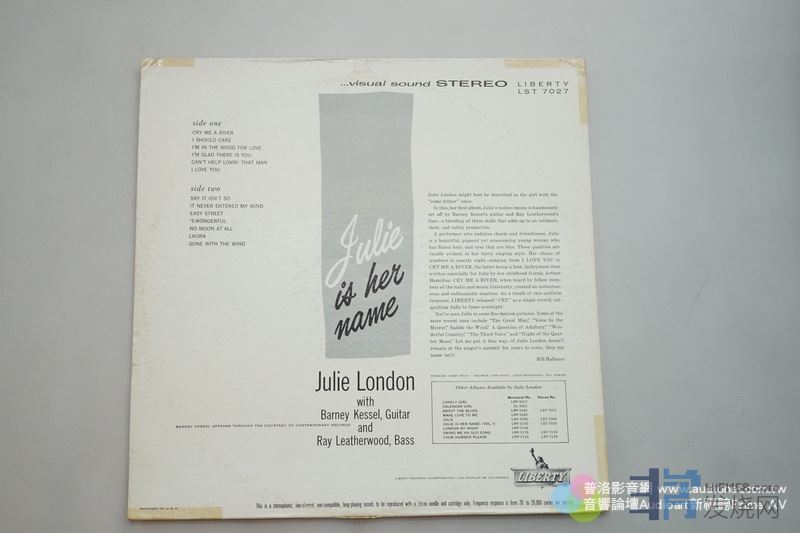 再来我请吴辉⾈找出Julie London第⼀张专辑,那是1955年的单声道录⾳,没想到吴辉⾈有立体版,当然⾺上拿出来比较。单声道版⽤那套单声道唱头来唱,立体版⽤Linn唱头,前⾯说过,唱立体声这套光是唱头的价格就抵得过单声道那套全部,可是,我必须说,单声道版的声⾳竟然比立体声版还好。好在哪里?⾳质好,定位好。我相信没有听过录⾳优异单声道唱片的⼈⼀定不相信,但事实真的如此。单声道唱头、录⾳没有左右声道串⾳的问题,没有其他失真问题,⾳质真的比较好,定位也更清晰。