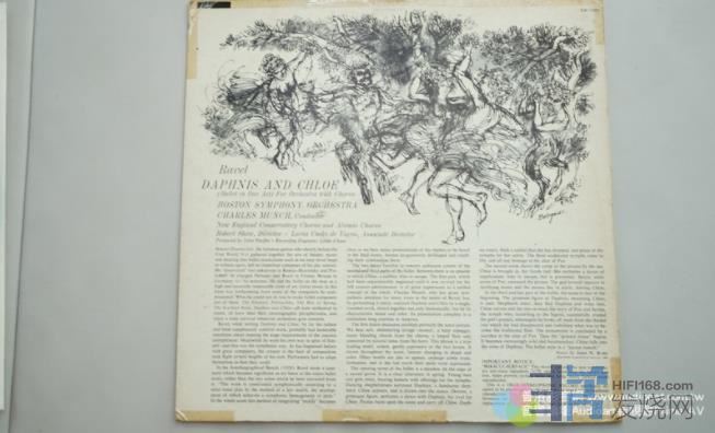我先请吴辉⾈把孟许指挥波⼠顿交响乐团的拉威尔「达夫尼与克罗埃」芭蕾舞全曲找出来,1955年版与1961年版都要。我最近才写过1955年版的AP复刻片,⾳响效果非常好,但是我⼀直没听过1961年版,我知道吴辉⾈⼀定有,所以才有意比较。⼆者比较之后,我有点了解为何复刻版会选择1955年版,⽽不是1961年版,因为1955年版听起来的确比较好。不仅⾳质比较好,整体⾳乐平衡性也比较好,1961年版在许多地⽅会比较强调某项乐器。