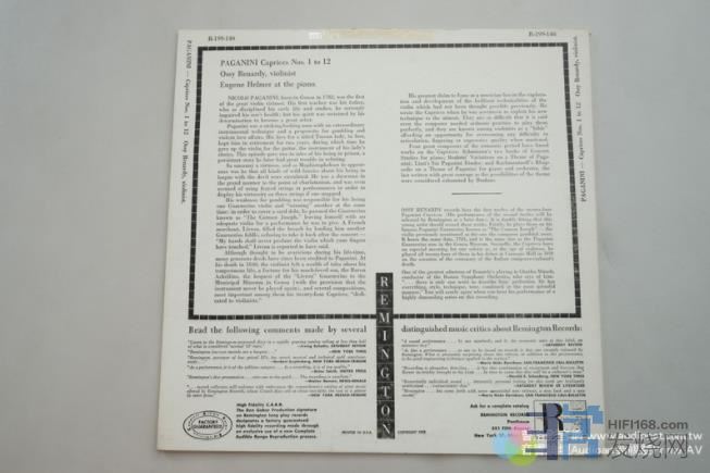 Liliane Garnier这位法国女⼩提琴家的唱片不多,这张却非常棒,不过这张是加拿⼤RCA版,在蒙特利尔出版。这张也是有单声道与立体声版,我们听的是立体声版,琴⾳非常美,我想如果是单声道版说不定⾳质更美。再来吴辉⾈挑出Remington唱片,这家唱片公司也是短命,从1950-1957,属于廉价版唱片,版质常会有杂⾳,但我我没想到他家的单声道录⾳竟然那么好。我们听了Michele Auclair的⼩提琴演奏,那么温暖⼜真实的⼩提琴⾳质⾳⾊绝对是⾳响迷的最爱。再来⼀张Remington唱片的单声道录⾳,那是Ossy Renardy(1920-1953)是奥地利英年早逝的⼩提琴家,听他单声道录⾳的帕格尼尼,⼼里也是感动莫名。