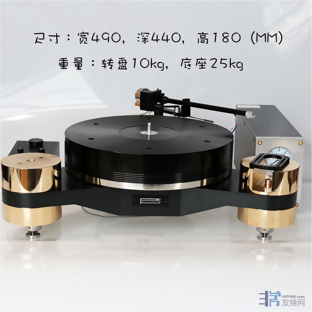 2020新款T202气浮黑胶唱机,一个新系列的开始,加强版的60mm厚度铝合金不锈钢复合转盘,重新设计的金属底座,整块材料铣出,加以异型结构优化的同时,降低重心,提高刚度,对于声场,全频段密度,低频的下潜宽松和弥漫感都有很大的提升,黄铜唱臂板,镀金处理,标配A18210寸唱臂,也可以搭配气浮系列唱臂,最多可同时安装3只唱臂,整机重量35公斤