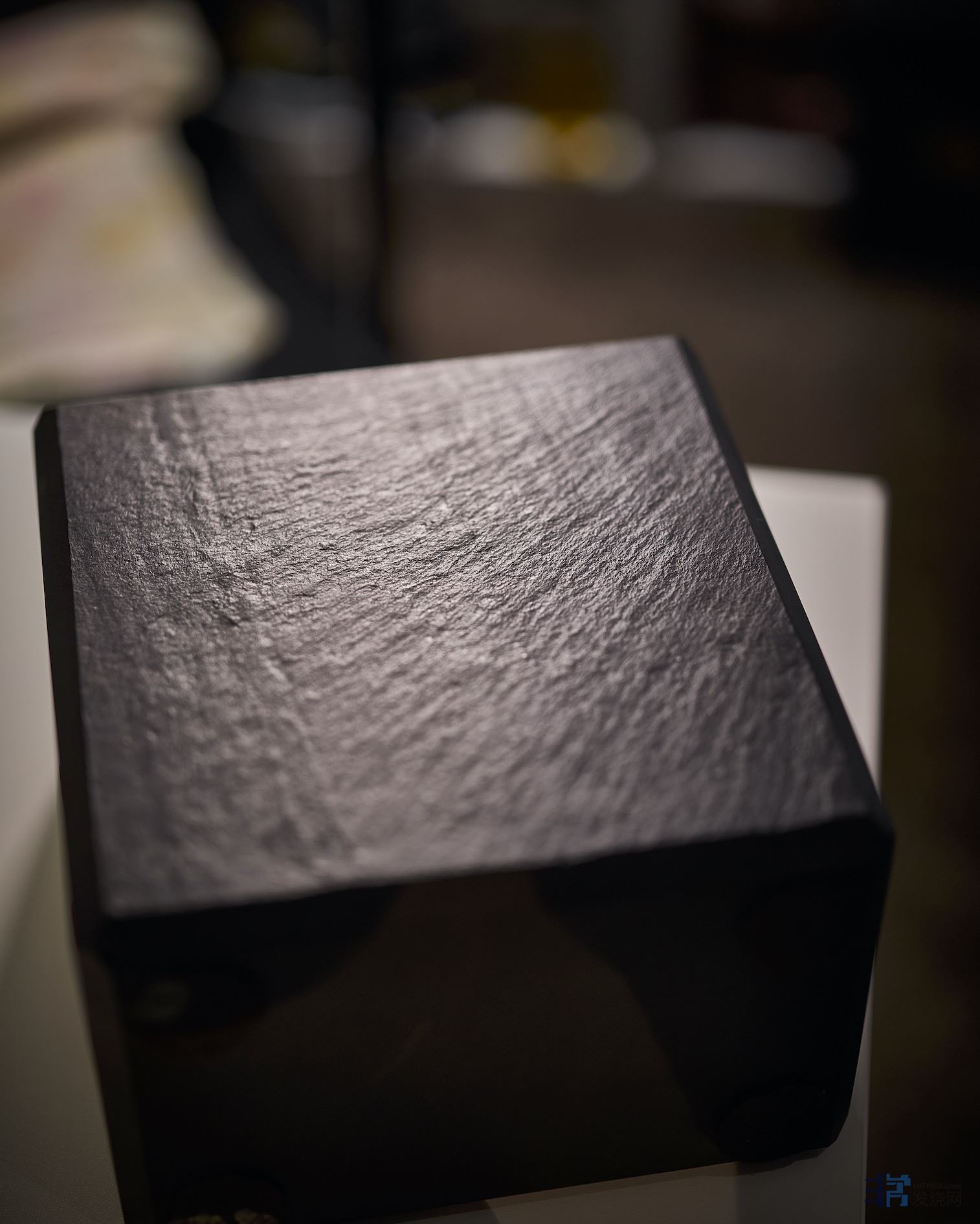 A:我有幾百年樹齡的實木箱體;我:我有六億年歲月的石頭仔。