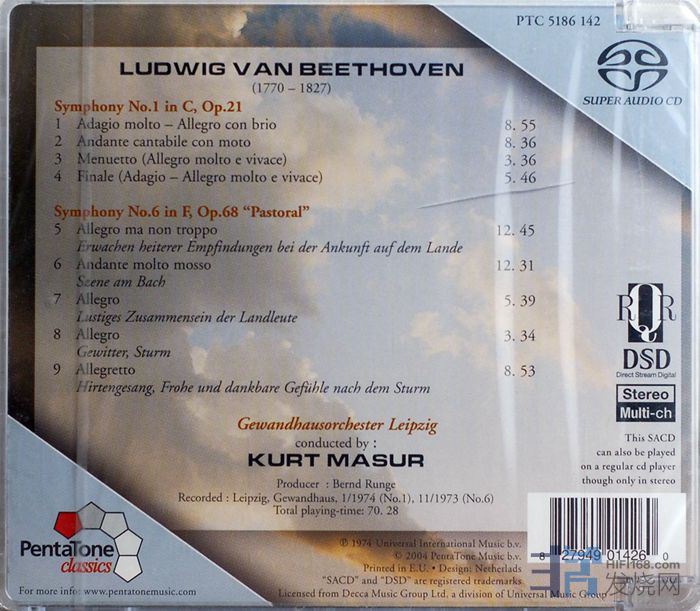 PentaTone 贝多芬第1、6交响曲/马祖尔Kurt Masur 金碟SACD
