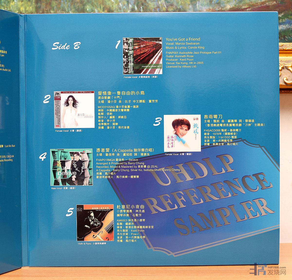 这款《UHDLP》精选了叶振棠、 甄妮、郭雅志、潘小芬的代表作,有大动态、有人声、有弦乐、有民乐、有爵士、有古典,色彩缤纷。