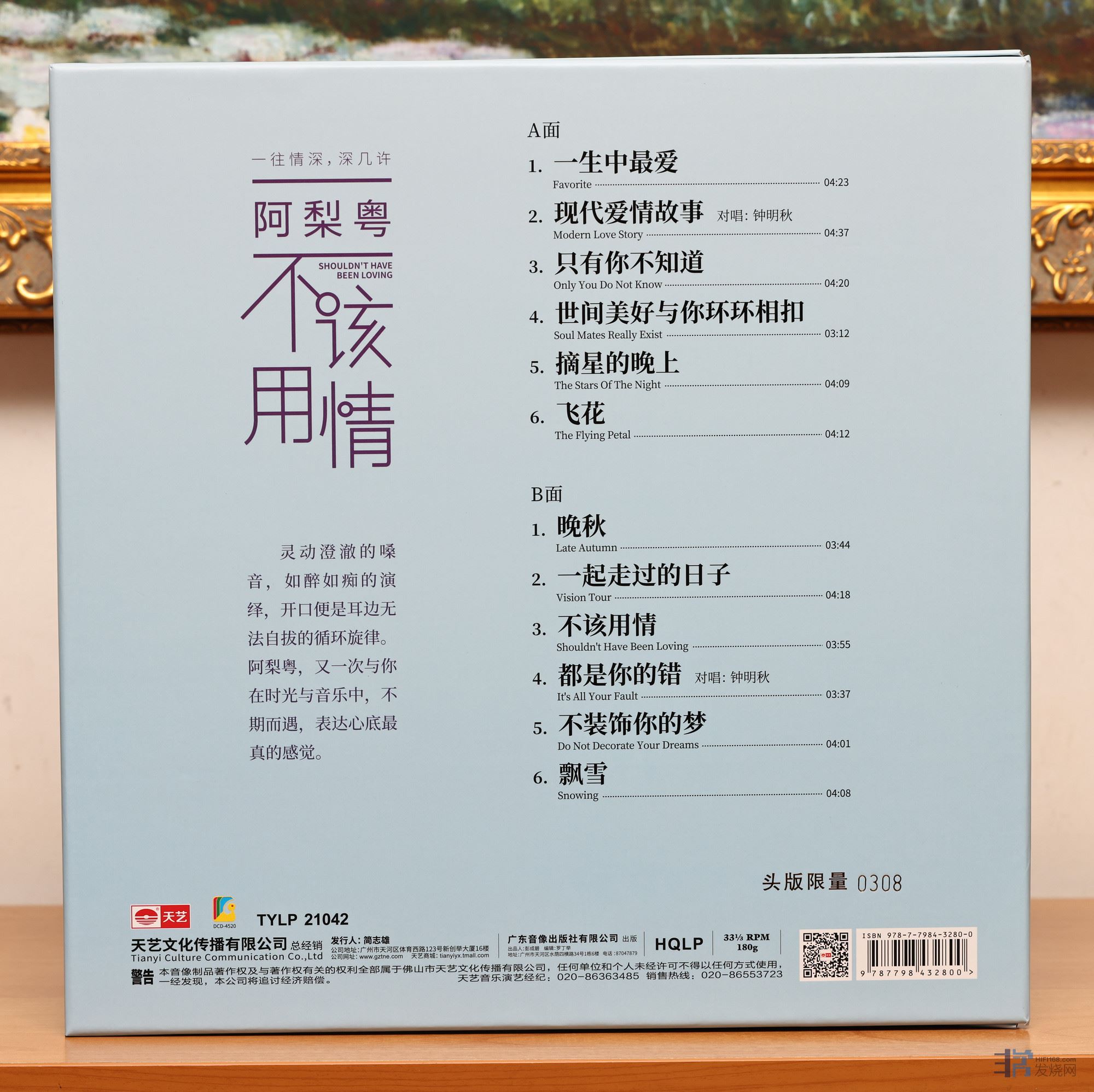 玩而优则商,天艺唱片目前为止出版了阿梨粤的两张个人专辑,《不该用情》就是其中的第二张。