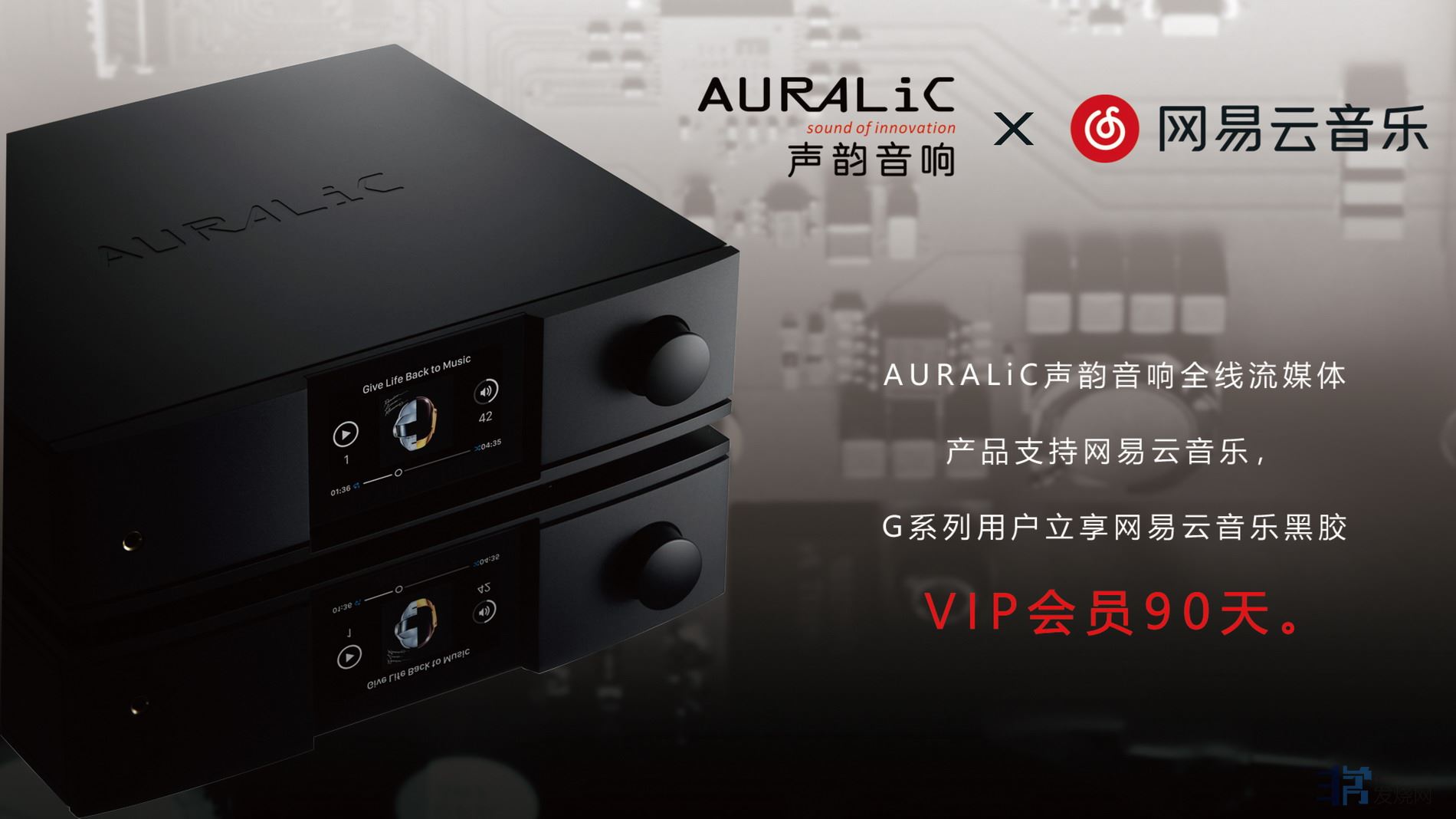 本次活动所赠网易云音乐黑胶VIP会员,需在2023年7月1日前激活和使用,仅限本人使用,不得转售,仅限中国大陆地区销售的AURALiC声韵音响产品参加。