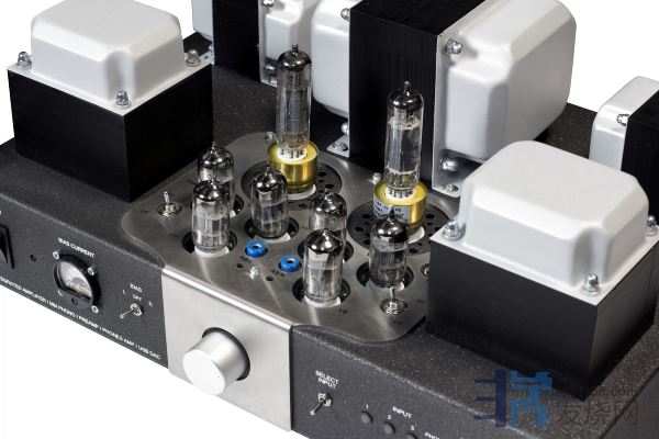 Tsakiridis Devices神曲的机器全都是胆机,Theseus忒修斯也不例外。这是一款合并式、电子管、单端A类放大器,功率从9W到24W不等,取决于使用的电子管。这是什么意思呢?忒修斯的电路结构,是基于每声道一只束射管的输出级。因此,根据喜好和需要,可以使用不同的束射管,从EL84到现代的KT170。我们测评的Theseus忒修斯配备了Tung Sol的 KT150,而前级放大部分,则使用了六只6N1P。这些胆管被一个透明的有机玻璃/铁笼子保护着,这巧妙地突出了电子管的美丽,也使儿童不会触碰到。在电子管旁边有一些开关,通过这些开关可以将输出电子管输出级设置成“三极管模式”或“超线性模式”,还可以选择反馈量(正常/低)。