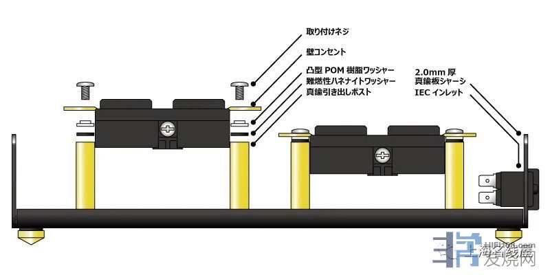至于Oyaide MTB II所用IEC电源输入插座,则稳妥固定在厚2mm的黄铜金属本体上,所用插座正是兼具理想抑震和耐热效能的原厂Power Inlet PP,此插座的导电部份使用脱氧磷青铜导体,Oyaide再在其上镀铂并镀钯,并在后方加大焊接面积,因此能够有效把2mm的单芯纯银线紧密焊接于其上,配合使用的焊料是种比一般焊锡物料纯度更高的SS-47,透过高达3-3.5%的银和1.7%的铜的特别金属混合比例,有效降低接触电阻, 而且Oyaide更在所有插座周围应用电磁波吸收胶带MWA-010T,有助去除电磁噪讯干扰与及减少因接触所产生的电磁失真。