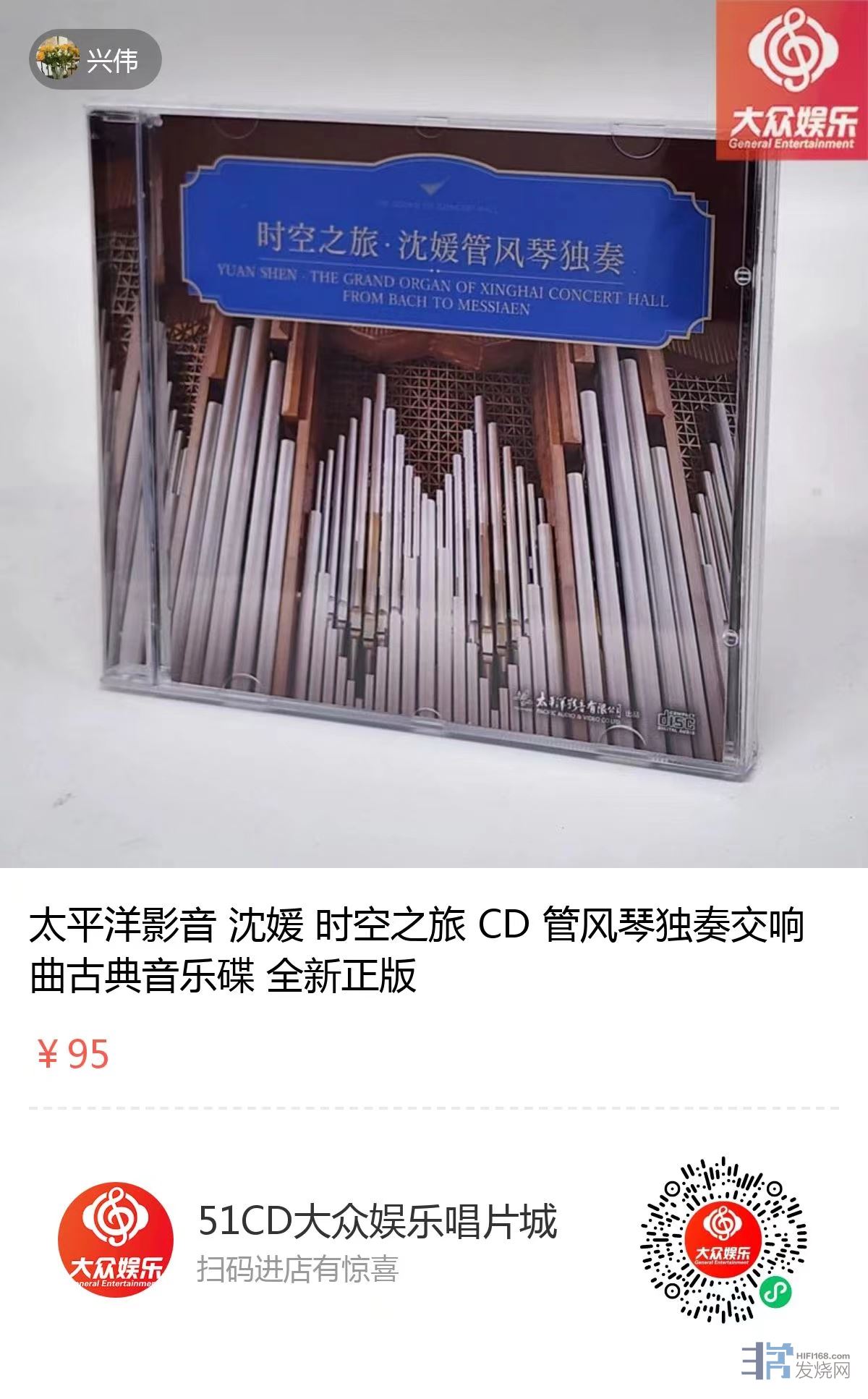 《时空之旅·沈媛管风琴独奏》也是这座管风琴是首张商业发行唱片,别具纪念意义。