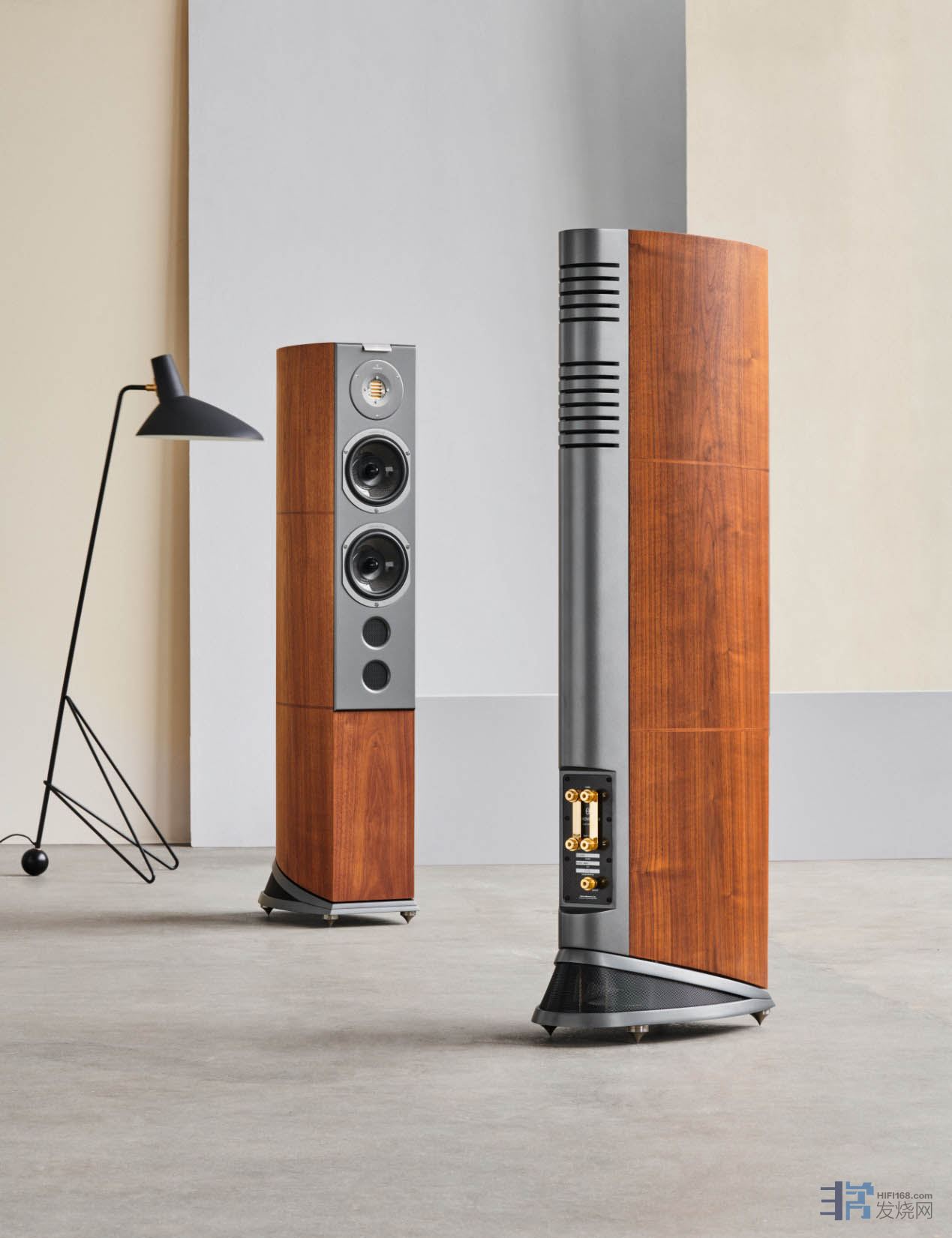 这对评测用的扬声器采用意大利胡桃木饰面,但也有多种表面处理可供选择(钢琴漆丝绸白和钢琴漆黑、非洲花梨木)。您还可以支付额外的费用,订制其他的饰面处理,该公司推荐名牌跑车的颜色。我在网上看到过一种亮绿色,看起来特别绚丽,与普通的绿色有些不同,我认为它是我的最爱......