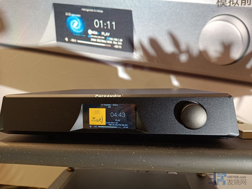 本次音展罗总以自己代理的FOSTEX单元做的音箱作为搭配,体现其对代理产品的自信心满满。新的AIRDSD PLUS在射灯的照射下非常有高级感,面板简洁,功能强大,完全可以和进口高档产品一较高低。