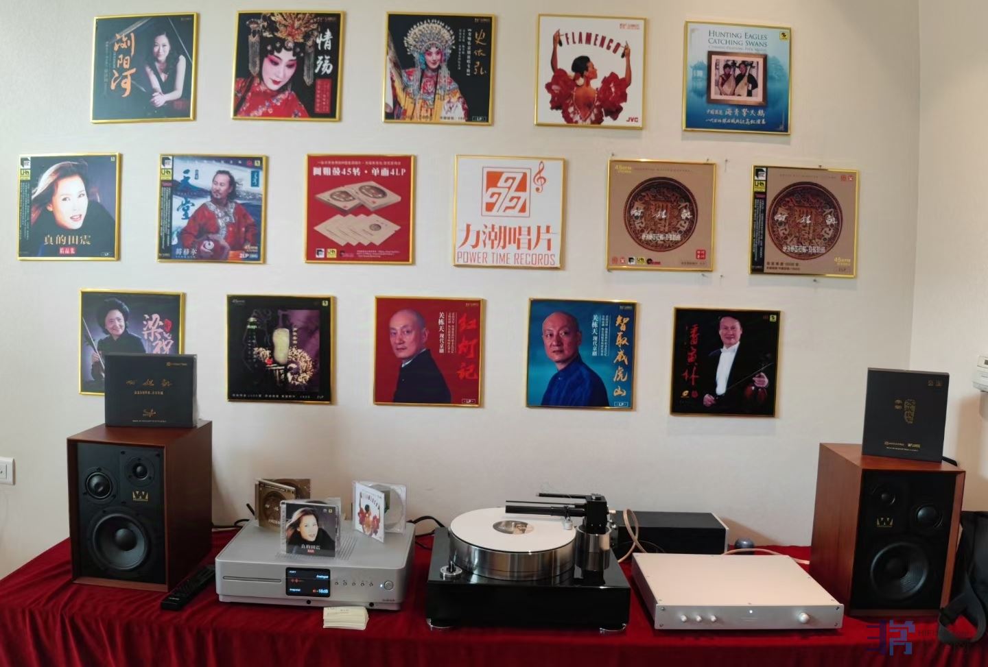 昨天上午,菲凡T224气浮转盘+A181旗舰气浮正切唱臂+FF1 MC唱头+PH21S唱放,被同行借到展房做Voodoo Labs黑胶线材演示!
