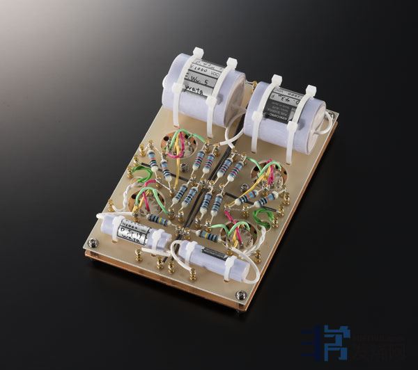 音量控制是前级放大器其中一个核心部分,它主宰着放大器的透明度,音量控制越优秀,放大器的音效失真便越低。G-700i的音量控制是一个由MELF电阻器组合出来50级音量衰减器。MELF是Metal Electrode Leadless Face的缩写,中文名称为“无引线电阻”。MELF电阻器呈圆柱形,两端是金属,大小跟表面安装技术(SMT)的电阻差不多,制作过程较普通电阻复杂,成本也较高,但优点是表现稳定,不容易受温度变化及湿度高低影响,把它用在音量控制十分适合。音量控制由一个位于机身中央的黑色盒子保护着,黑色盒子采用纯铜制造,用来防止电磁波及射频干扰。